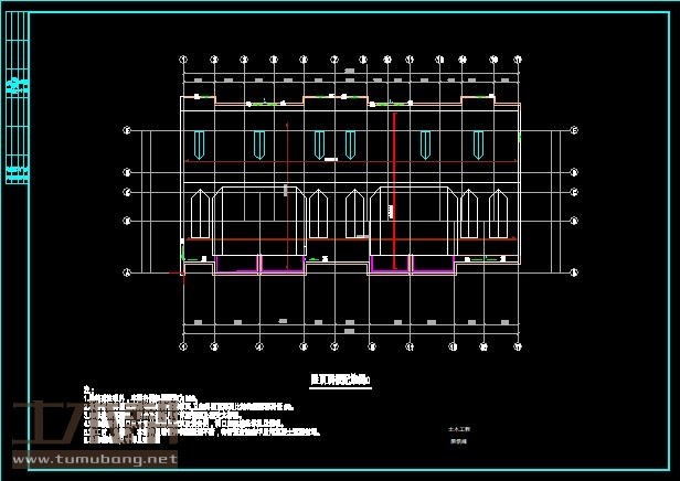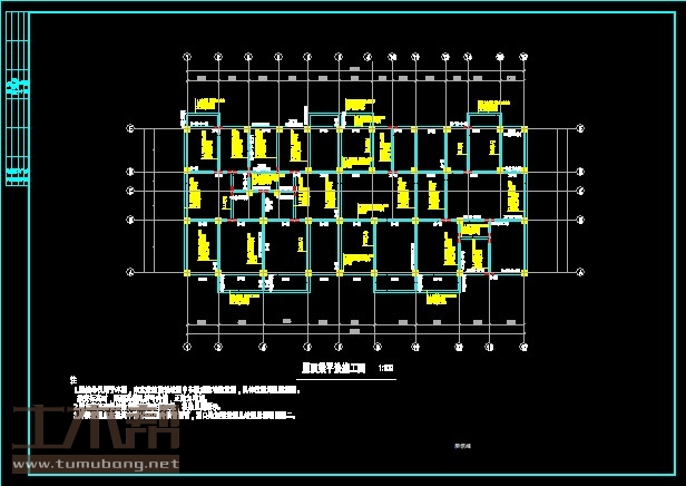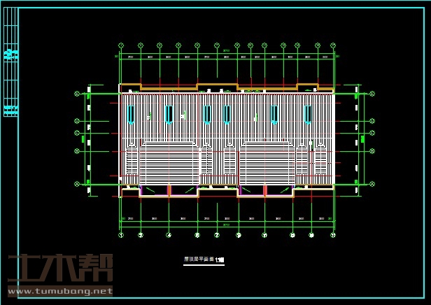 建筑长29.7m,宽12.9m.一榀框架层高2.8m,柱距3.9m,3跨,跨度3.7m,4.2m,4.5m;