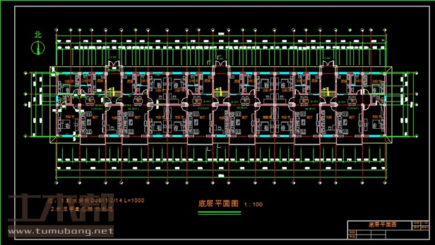 5层框架结构住宅楼,土木工程建筑结构毕业设计,长56.4米,宽11.1米,面积3400平方米
