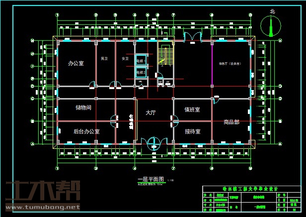 一层:后台办公室11.25*4.4*1间,储物间11.25*4.4*1间,接待室7.5*4.4*1间,值班室7.5*4.4*1间,商品部7.5*8.8*1间,休息厅7.5*8.8*1间,女卫3.75*8.8*1间,男卫3.75*8.8*1间,办公室7.5*8.8*1间;