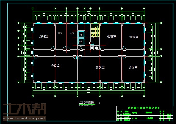 二层:会议室15*8.8*2间,会议室7.5*8.8*2间,档案室7.5*8.8*1间,女卫3.75*8.8*1间,男卫3.75*8.8*1间,资料室7.5*8.8*1间;