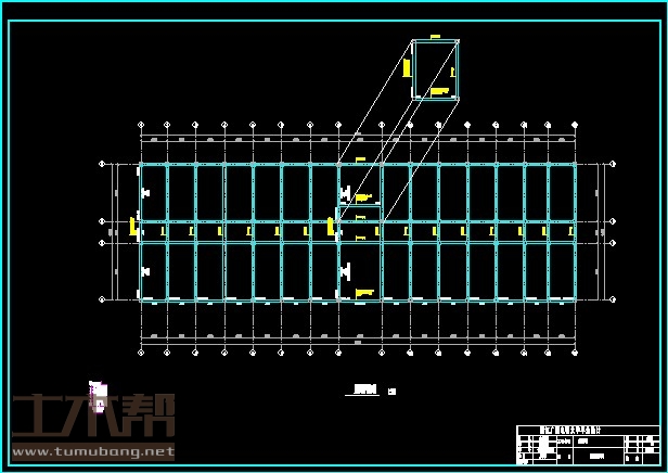 建筑长50.9m,宽17.3m.一榀框架层高4.5m,柱距7.2m,3跨;