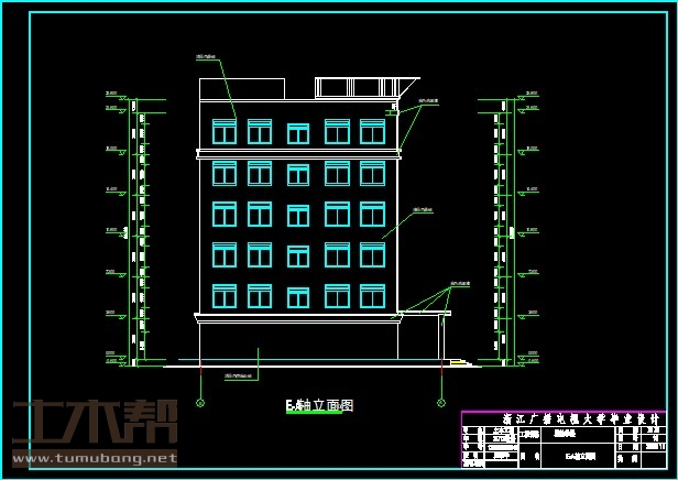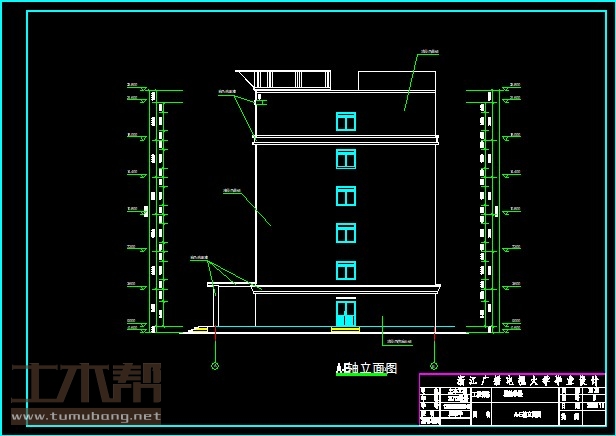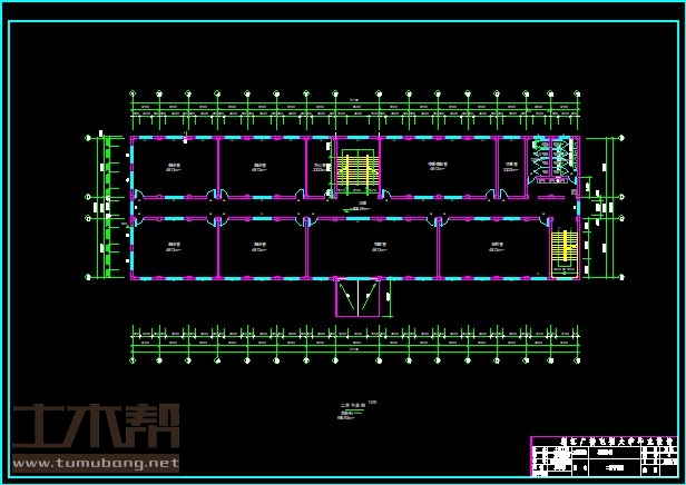 三~五层:多媒体教室28.2m*6.3m*2间,办公室4.8m*6.3m*1间,多媒体教室19.2m*6.3m*1间,休息室4.8m*6.3m*1间,女卫3.9m*6.3m*1间,男卫4.2m*6.3m*1间,多媒体教室18.3m*6.3m*1间,多媒体教室21m*6.3m*1间;