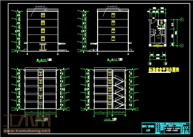 三层至五层:宿舍4.2m*6m*1间,宿舍3.6m*6m*21间,宿舍6.6m*6m*1间,储藏室3m*6m*3间;