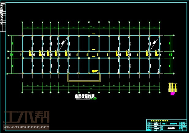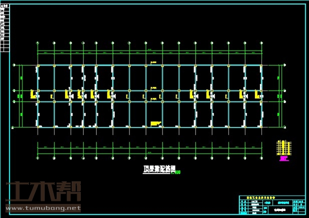 建筑长61m,宽17m.一榀框架层高3.9m,柱距4.5m,3跨,跨度7m,3m,7m;