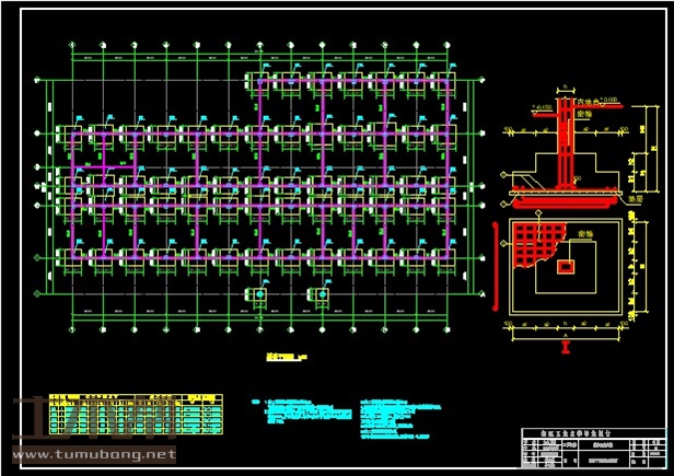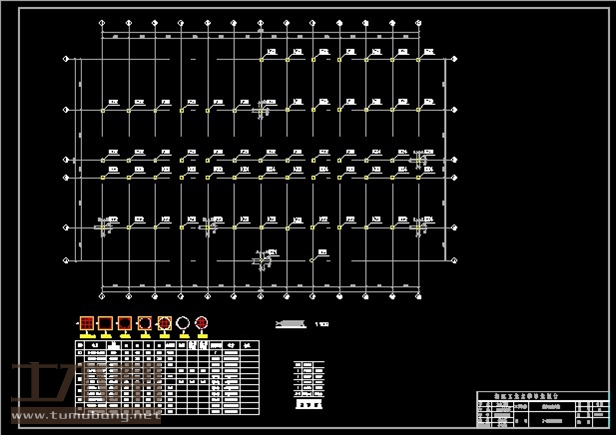 建筑长43.44m,宽23.22m.一榀框架层高3.9m,柱距3.6m,3跨,跨度6.9m,2.4m,6.9m;
