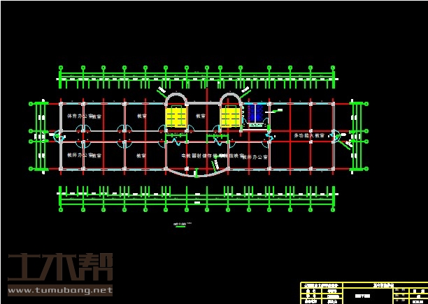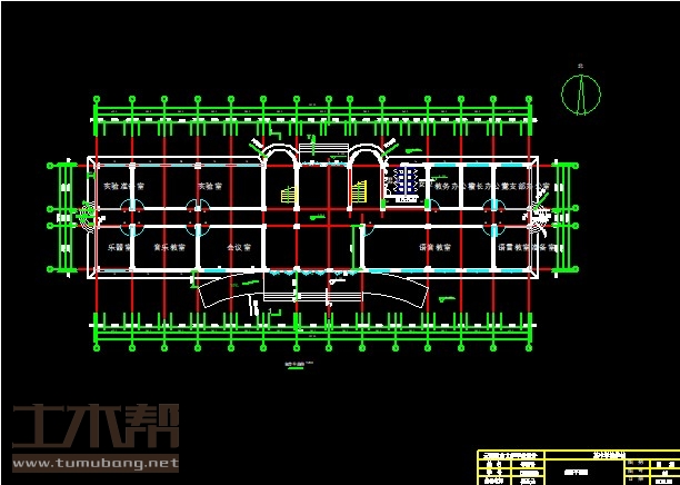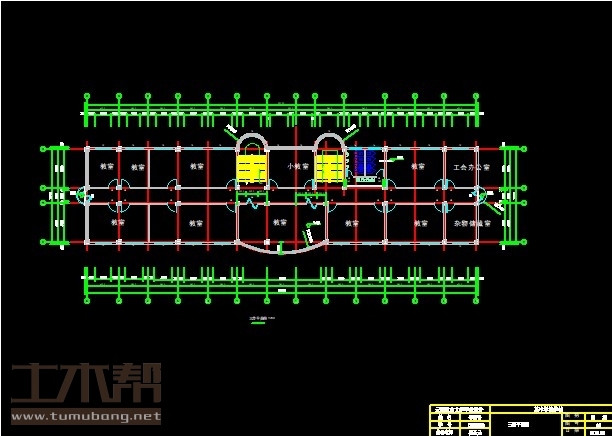 二层:教室7.8*5.1*4间、11.7*5.1*1间,学生阅览室8.1*5.1*1间,书库7.8*5.1*1间,教师阅览室3.9*5.1*1间,小会议室6.3*5.1*1间,开水房4.2*5.1*1间,学生会办公室4.2*5.1*1间,科技活动室4.2*5.1*1间,总务办公室3.9*5.1*1间,体育器材室3.9*5.1*1间;