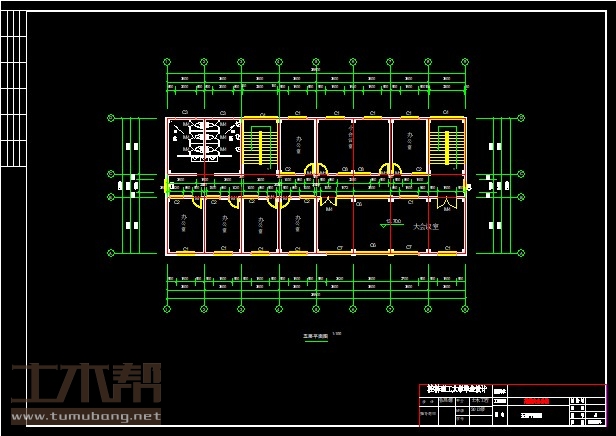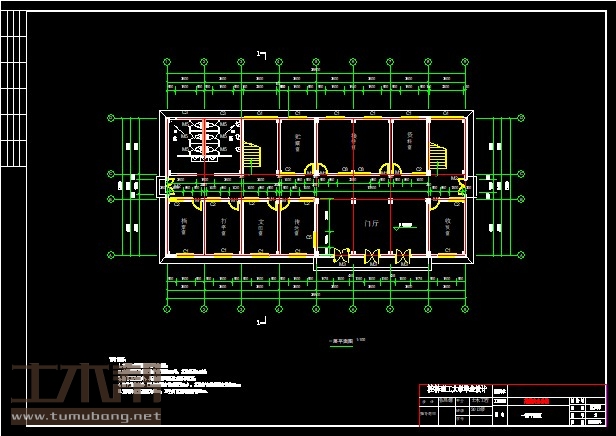 一层:贮藏室3.6*5.4*1间,接待室7.2*5.4*1间,资料室3.6*5.4*1间,档案室3.6*5.4*1间,打字室3.6*5.4*1间,文印室3.6*5.4*1间,传达室3.6*5.4*1间,收发室3.6*5.4*1间;