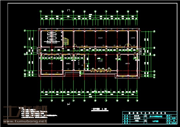 一层:会议室18*5.4*1间,文印室3*5.4*1间,阅览室7.2*5.4*1间,储藏室3.6*5.4*1间,传达室3.6*5.4*1间,接待室7.2*5.4*1间;