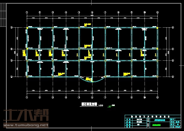 建筑长65.34,宽17.64m.一榀框架层高3.9m,柱距8.4m,3跨,跨度5.2m,3.75m,6.85m;