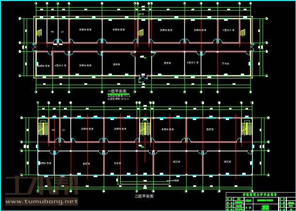 二层:多媒体教室9*6.6*3间,教研室15*6.6*1间、13.5*6.6*1间,阅览室13.5*6.6*2间,会议室13.5*6.6*1间,教师休息室4.5*6.6*1间;
