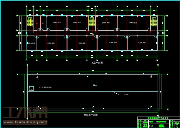五层:多媒体教室9*6.6*3间,计算机室15*6.6*1间、13.5*6.6*4间,教师休息室4.5*6.6*1间;