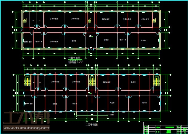 二层:多媒体教室9*6.6*3间,教研室15*6.6*1间、13.5*6.6*1间,阅览室13.5*6.6*2间,会议室13.5*6.6*1间,教师休息室4.5*6.6*1间;