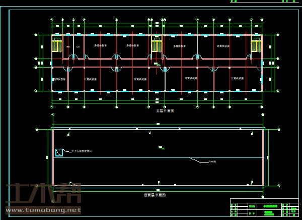五层:多媒体教室9*6.6*3间,计算机室15*6.6*1间、13.5*6.6*4间,教师休息室4.5*6.6*1间;