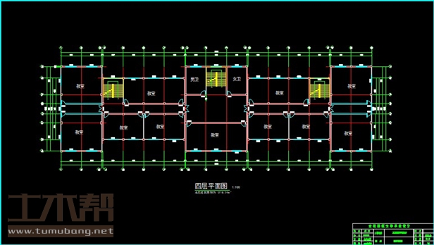 四层:教室9.6*8.7*4间、14.4*6*3间、9.6*6*4间,值班室4.8*6.6*2间;