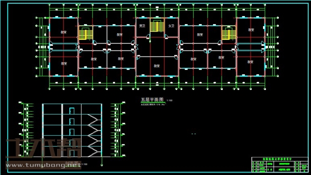 五层:教室9.6*8.7*4间、14.4*6*3间、9.6*6*4间,值班室4.8*6.6*2间;