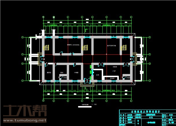 二~六层:水房4.5*5.4*1间,活动室9*5.4*1间,工作间3.3*5.4*1间,宿舍4.5*5.4*4间,交流空间3.3*5.4*1间;