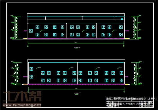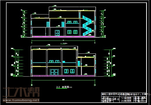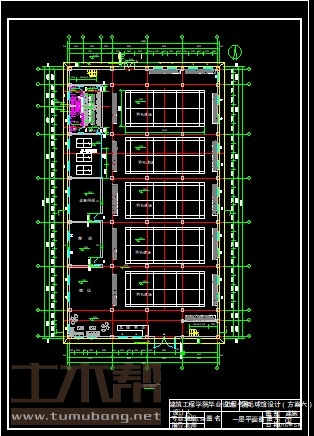 一层:羽毛球场18m*7.5m*5间,库房5.4m*7.5m*1间,设备用房5.4m*7.5m*1间,商店5.4m*7.5m*1间,乒乓球室5.4m*7.5m*1间,男更卫5.4m*4.8m*1间,女更卫5.4m*4.8m*1间;