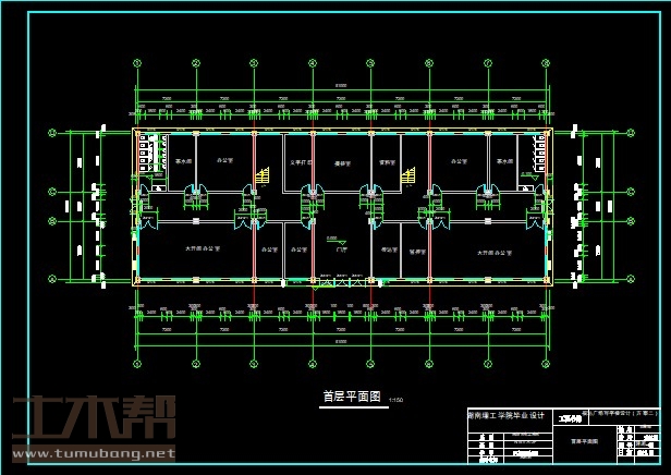 6层框架结构办公楼,土木工程建筑结构毕业设计,长51米,宽18.6米,面积7000平方米