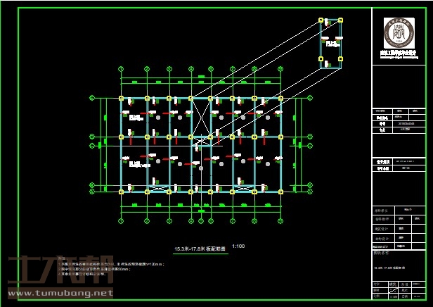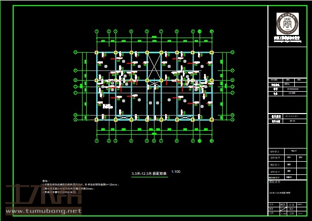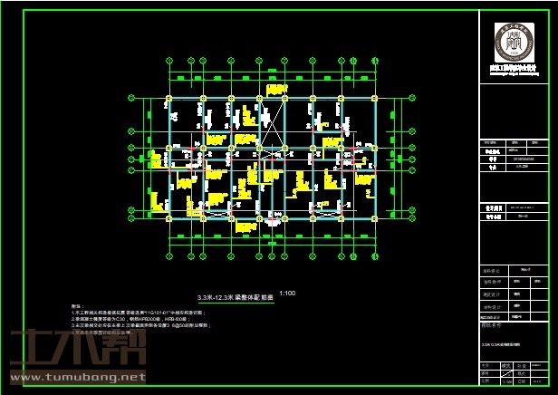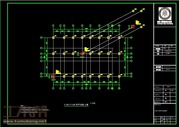 建筑长29m,宽12.8m.一榀框架层高3.3m,柱距4.5m,2跨,跨度5.3m,7.5m;