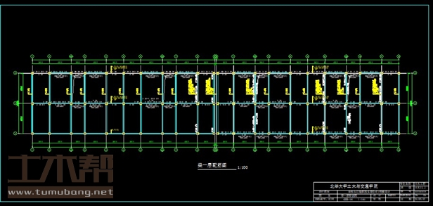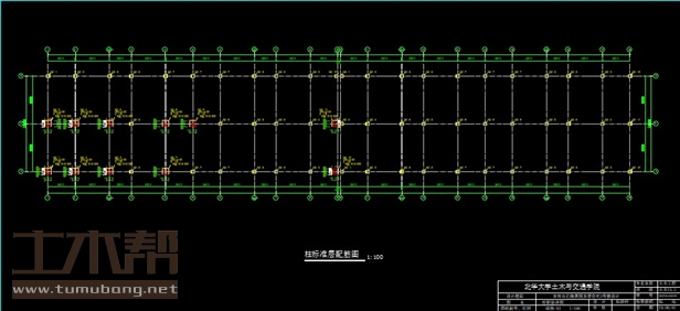 建筑长76.55m,宽12.6m.一榀框架层高3m,柱距3.6m,4.5m,3m,2跨,跨度6.3m,6.3m;