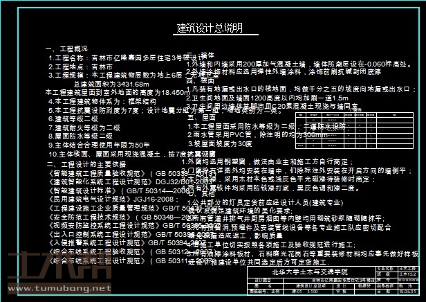 6层框架结构住宅楼,土木工程建筑结构毕业设计,长76.55米,宽12.6米,面积3432平方米