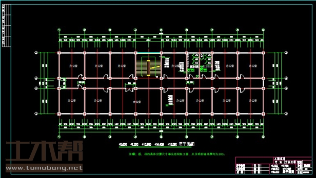 五层:办公室6m*6m*12间,会议室12m*6m*1间,女卫生间3m*6m*1间,男卫生间3m*6m*1间,楼梯间6m*6m*1间;