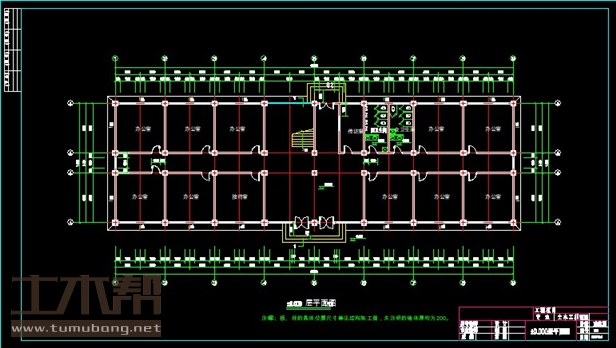 二层:办公室6m*6m*12间,会议室12m*6m*1间,女卫生间3m*6m*1间,男卫生间3m*6m*1间,楼梯间6m*6m*1间;