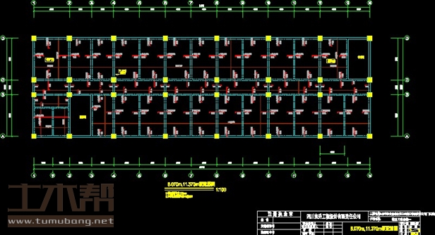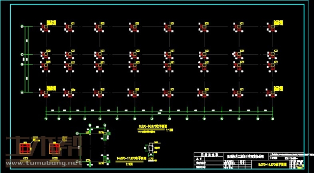 建筑长54.7m,宽16m.一榀框架层高4.5m,柱距8.4m,3跨,跨度6.8m,2.4m,6.8m;
