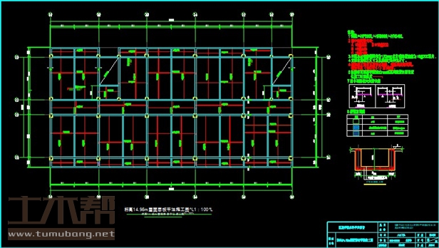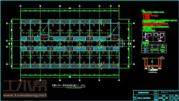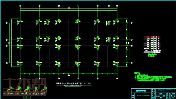 建筑长39m,宽19.4m.一榀框架层高3m,柱距7.8m,3跨,跨度6.9m,2.4m,6.9m;