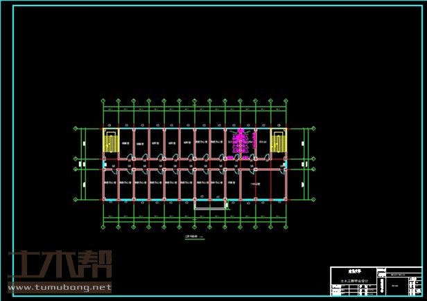 二层:普通办公室3m*6m*9间,领导办公室3m*6m*1间,休息室3m*6m*1间,小会议室9m*6m*1间,楼梯间3m*6m*2间,开水间3m*6m*1间,男卫生间3m*6m*1间,女卫生间3m*6m*1间,资料室3m*6m*3间,储藏室3m*6m*2间;