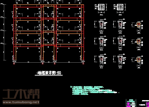建筑长57.6m宽17.4m.一榀框架层高3.6m,柱距7.2m,3跨,跨度7.2m,3m,7.2m;