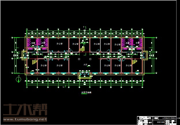二层:楼梯间4.8m*6.6m*3间,办公室4.8m*6.6m*11间,办公室9.6m*6.6m*2间,女厕4.8m*6.6m*2间,男厕4.8m*6.6m*2间;
