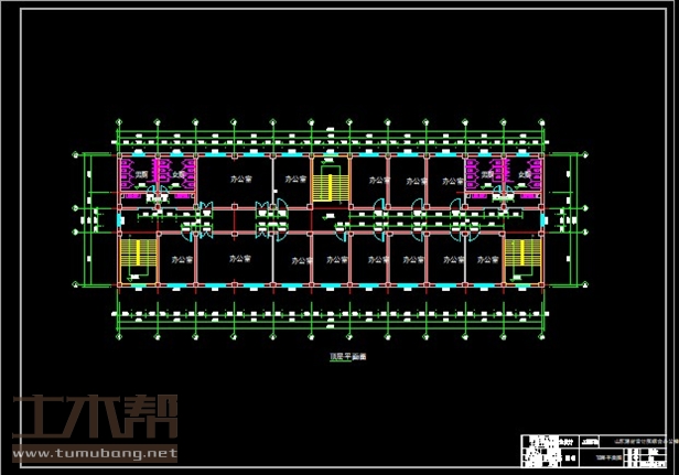 五层:楼梯间4.8m*6.6m*3间,办公室4.8m*6.6m*11间,办公室9.6m*6.6m*2间,女厕4.8m*6.6m*2间,男厕4.8m*6.6m*2间.