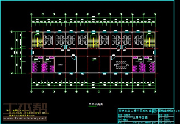 三层:男卫3.7m*5.5m*2间,女卫3.6m*5.5m*2间,资料室7.2m*5.5m*1间,会议室7.2m*5.5m*1间,楼梯间3.7m*5.5m*2间,办公室7.2m*5.5m*4间,楼梯间3.6m*5.5m*1间;