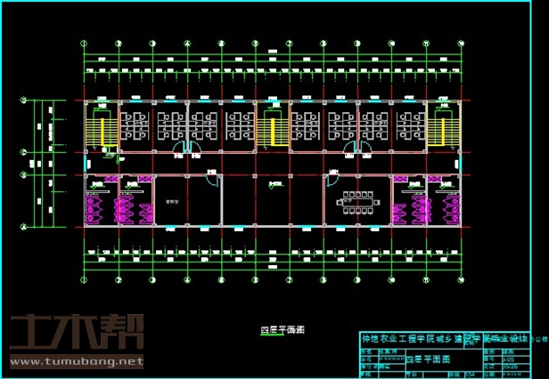 四层:男卫3.7m*5.5m*2间,女卫3.6m*5.5m*2间,资料室7.2m*5.5m*1间,会议室7.2m*5.5m*1间,楼梯间3.7m*5.5m*2间,办公室7.2m*5.5m*4间,楼梯间3.6m*5.5m*1间.