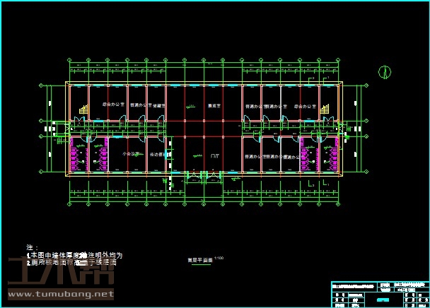 二层:男厕3.6m*6.6m*2间,女厕3.6m*6.6m*2间,普通办公室3.6m*6.6m*3间,小会议室7.2m*6.6m*1间,阅览室14.4m*6.6m*2间,综合工作室10.8m*6.6m*1间,楼梯间3.6m*6.6m*2间,综合办公室7.2m*6.6m*2间,文印室7.2m*6.6m*1间;