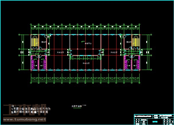 五层:男厕3.6m*6.6m*2间,女厕3.6m*6.6m*2间,大会议室10.8m*16.2m*2间,中会议室14.4m*6.6m*1间,楼梯间3.6m*6.6m*2间,配音室3.6m*6.6m*2间,休息平台14.4m*6.6m*1间.