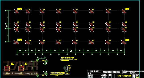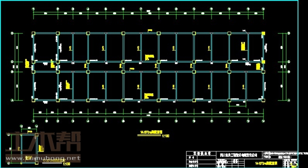建筑长54.7m,宽16m.一榀框架层高4.5m,柱距4.2m,3跨,跨度6.8m,2.4m,6.8m;