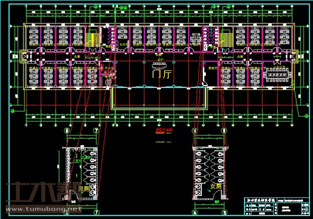 二层:大会议室8m*16.5m*1间,普通办公室4m*7m*17间,储藏室4m*3.5m*1间,开水间4m*3.5m*1间,领导办公室8*7m*2间,小会议室8m*7m*1间,走廊60m*2.5m*1间,楼梯间4m*7m*2间,男厕间4m*7m*1间,财务室4m*7m*1间,杂物室4m*7m*1间,女厕4m*7m*1间;