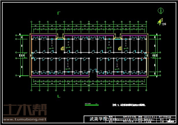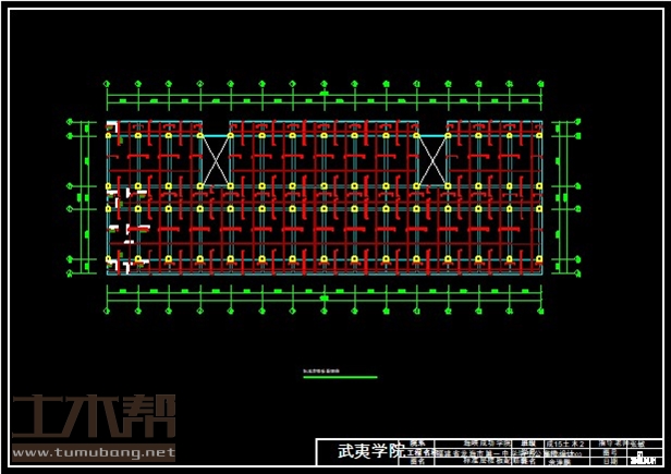 二层:寝室3.3m*6.9m*20间,卫生间3.3m*6.9m*2间,盥洗室3.3m*6.9m*2间,楼梯间3.3m*5.4m*2间,浴室3.3m*6.9m*2间;