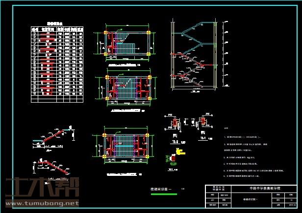 一层:年级办公室8.4m*7.2m*1间,办公室4.2m*7.2m*2间,门厅9.6m*7.2m*1间,教室10.2m*7.2m*5间,男厕4.2m*7.2m*1间,女厕4.2m*7.2m*1间,辅助用房4.5m*10.8m*1间,阶梯教室15m*10.8m*1间,楼梯间4.2m*8.1m*1间,楼梯间6.6m*8.1m*1间,男厕4.2m*8.1m*4间,女厕4.2m*8.1m*4间,实验室8.4m*12.9m*2间,辅助用房8.4m*4.2m*2间,楼梯间8.4m*4.2m*1间;