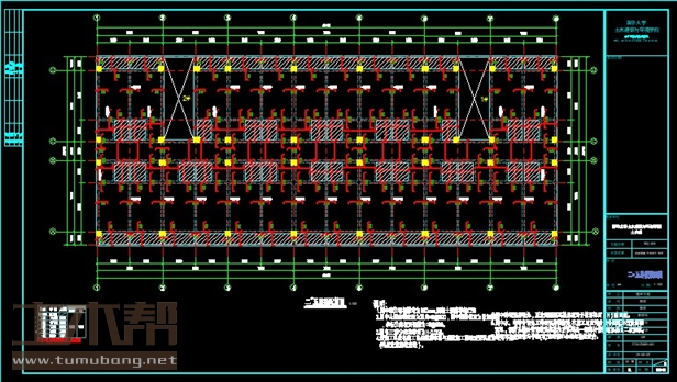 二层:宿舍3.6m*9.3m*26间,楼梯间3.6m*9.3m*2间;