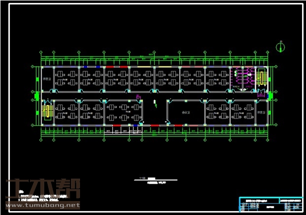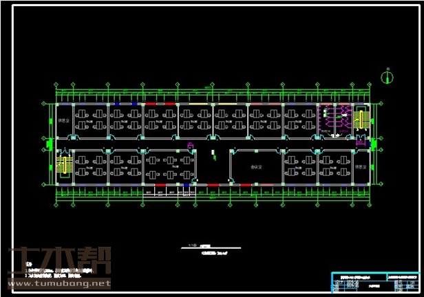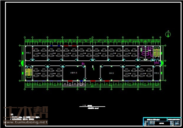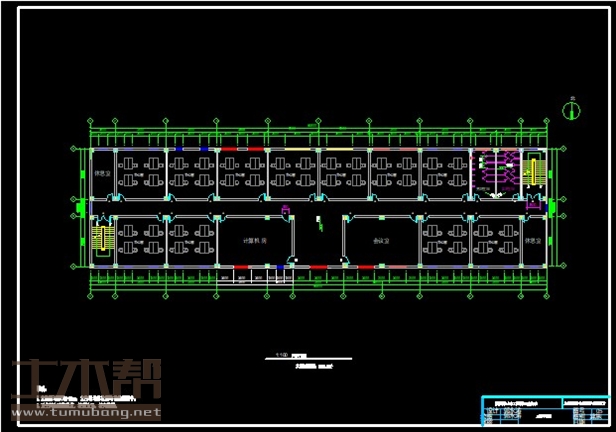 五层:楼梯间3.6m*7.2m*2间,办公室7.2m*7.2m*11间,计算机房10.8m*7.2m*1间,会议室10.8m*7.2m*1间,休息室3.6m*7.2m*2间,男卫生间3.6m*7.2m*1间,女卫生间3.6m*7.2m*1间;