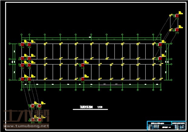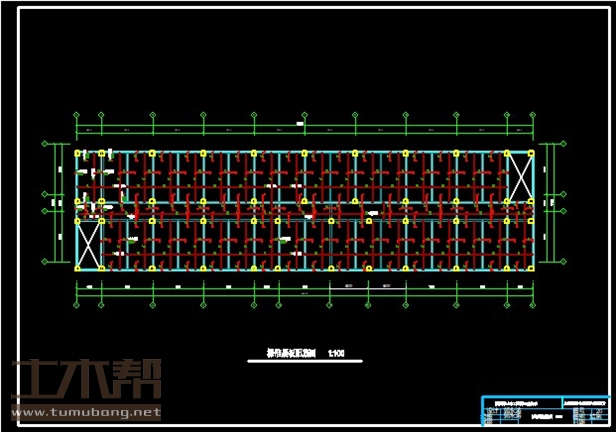建筑长64.8m,宽16.8m.一榀框架层高3.6m,柱距7.2m,3跨,跨度7.2m,2.4m,7.2m;