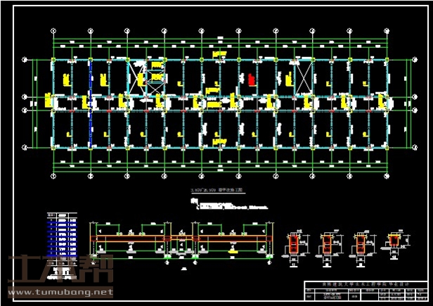 9层框架结构旅馆,土木工程建筑结构毕业设计,长65.5米,宽17.75米,面积10464平方米
