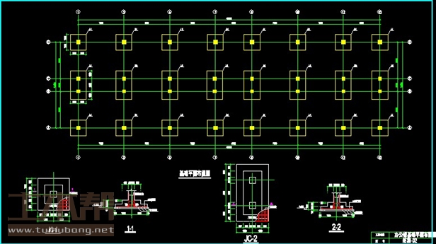 建筑长49.5m,宽14.1m.一榀框架层高3.6m,柱距7.5m,3跨,跨度6m,2.1m,6m;