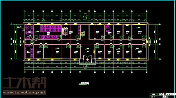 一层:开水间3.9*6*1间、图书室10.2*6*1间、文印室3.9*6*1间、传达室3.9*6*1间、办公室3.6*6*4间,3.9*6*2间,6.3*6*1间、资料室6*6*1间、档案室6*6*1间、接待室7.5*6.1间、会议室11.4*6*1间、男厕3.6*6*1间、女厕3.6*6*1间;