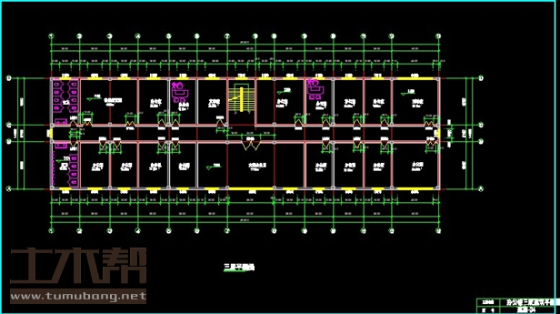三层:办公室3.9*6*5间,3.6*6*7间,6*6*1间,6.3*6*1间、大型会议室13.8*6*1间、活动室6*6*1间、报刊阅览室7.5*6*1间、文印室3.9*6*1间、男厕3.6*6*1间、女厕3.6*6*1间;