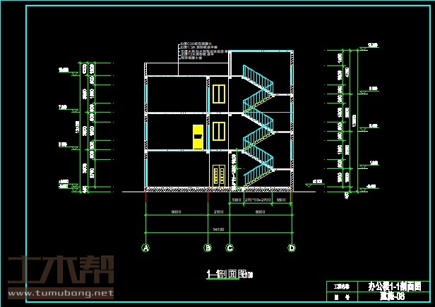 3层框架结构办公楼,土木工程建筑结构毕业设计,长49.5米,宽14.1米,面积2947平方米