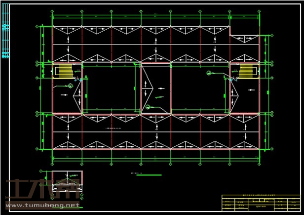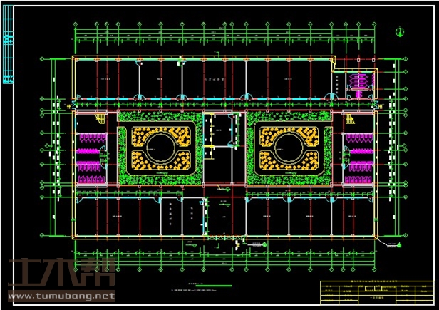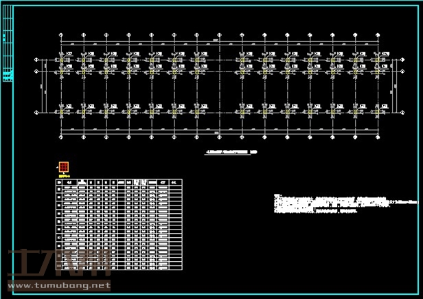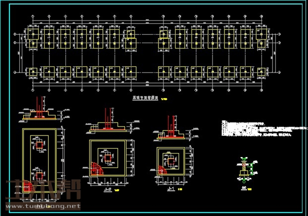 建筑长63.24m,宽37.54m.一榀框架层高3.2m,柱距4.5m,5跨,跨度8.1m,2.4m,16m,2.4m,8.4m;
